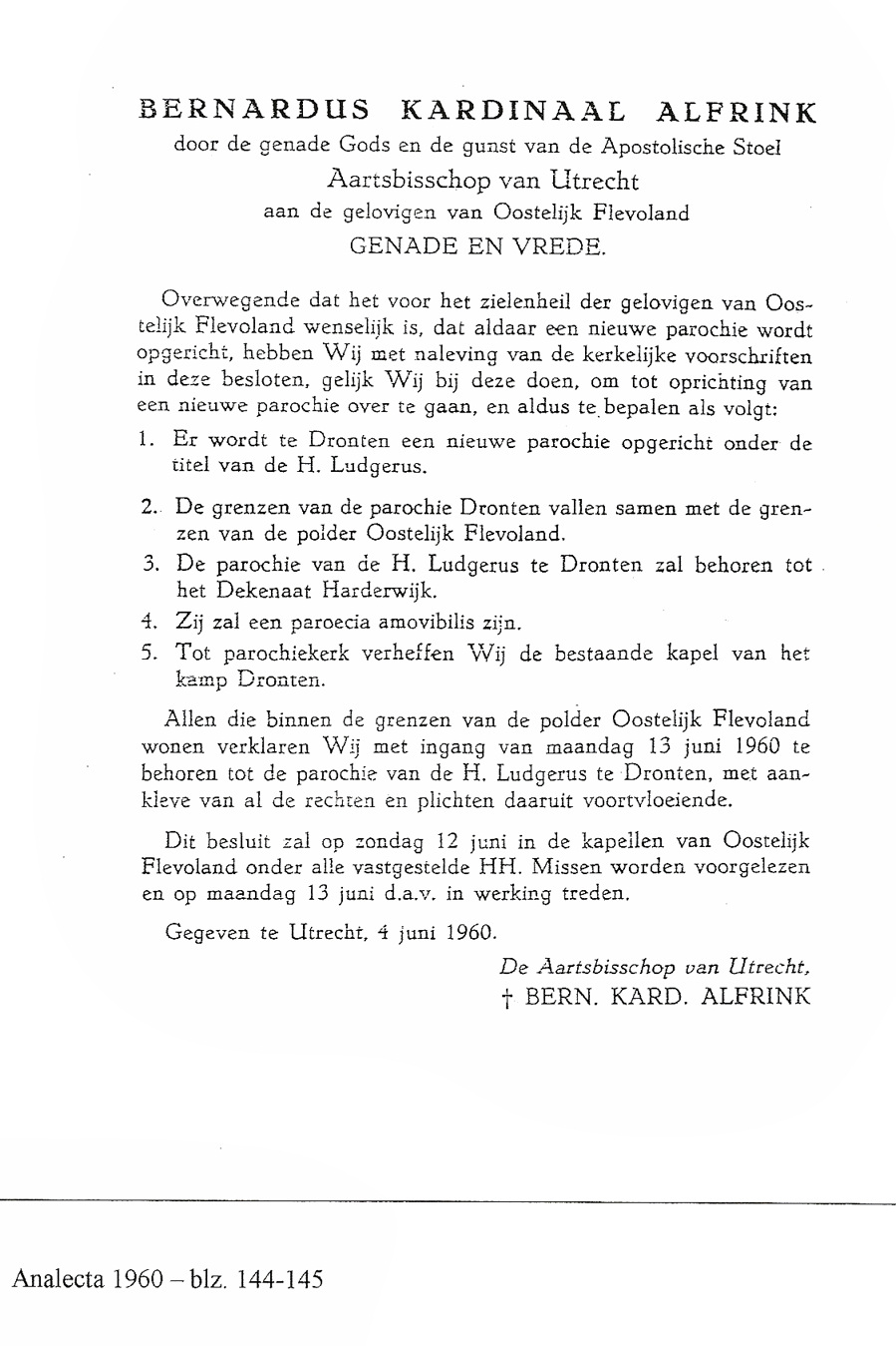 De geloofsgemeenschap H. Ludgerus in Dronten is op 13 juni 1960 opgericht. Hieronder vindt u enkele documenten en foto’s uit deze periode (1958-1962).