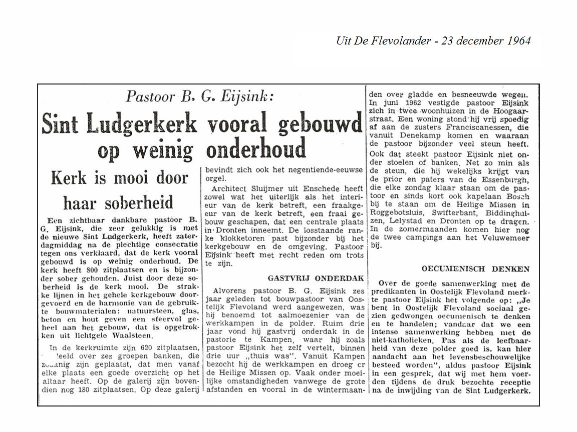 “Als de winter wijkt krijgt Dronten een R.K. Kerk” uit het parochieblad van Pastoor Eijsink