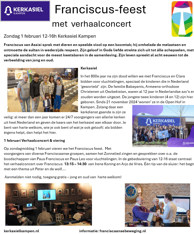 Franciscusfeest 1 februari bij kerkasiel Kampen